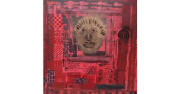 Abstract painting titled “ATOLL” featuring swirling ocean-like textures in turquoise, teal, purple, beige, and white. The colors blend in fluid motion, creating the impression of a natural atoll seen from above, with intricate wave patterns and organic shapes. Created by Serj Éty’n.